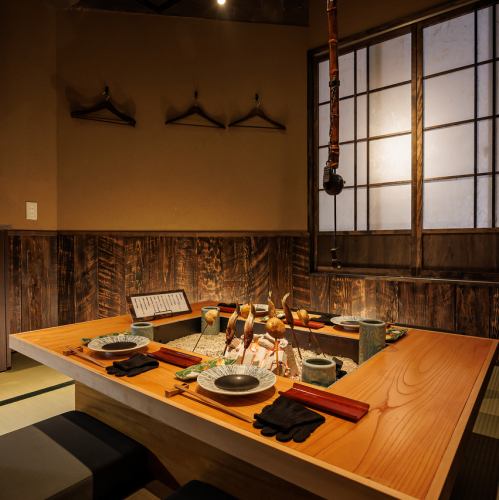 当店は完全個室のため、落ち着きある空間で、お料理を心ゆくまで楽しめます。囲炉裏の暖かさに包まれ、心身共にリラックスしながら、旬の食材を使ったお料理をお楽しみください。