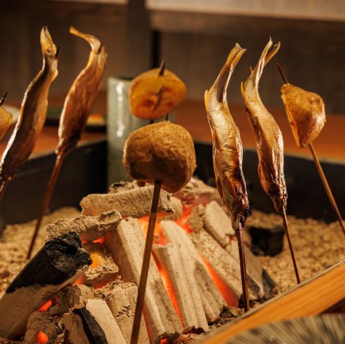 当店では、各個室に囲炉裏を設置しており、お客様の目の前で焼き上がるお料理を囲みながら、心地よい雰囲気のなかで特別なひとときをお過ごしいただけます。ぜひお越しください。